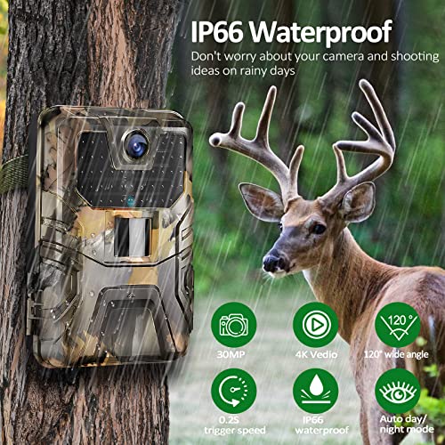 4K 30MP Trail Camera,Hunting Camera with APP Control,Bluetooth WiFi Wireless Wildlife Night Vision,0.2S Trigger Speed Hunting Gear,120°Wide-Angle,IP66 Waterproof Game Cam with Low Glow IR LED