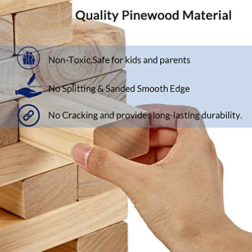 ApudArmis Giant Tumble Tower (Stack up to 4.2Ft), 54 PCS Pine Wooden Stacking Timber Game with 1 Dice Set – Classic Block Outdoor Game for Kids Adults Family