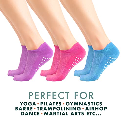 ATA Pilates Grip Socks for Women, Non-Slip Socks with Grippers for Yoga Barre Hospital, 3 Pairs Size 6-10