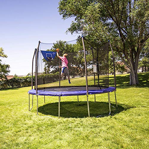 Home » Trampolines » Skywalker Trampolines 12-Foot Jump N’ Dunk Trampoline with Enclosure Net – Basketball Trampoline, Blue