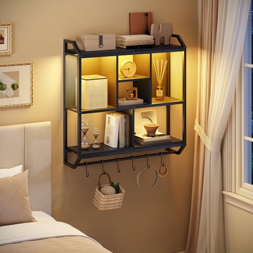 Click for More Images Gaming Shelf with Colorful LED Lights: The gaming floating shelves feature LED lights with tens of thousands of color options and adjustable brightness, all controlled by a convenient app. The music sync function allows the...