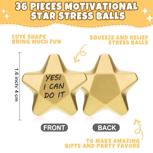Click for More Images Abundant to Play and Share: the package includes 36 pieces of foam stress balls, with classic gold colors, lovely star shapes, and motivational expressions, soft and interesting to play, ideal for anxiety relieving and...