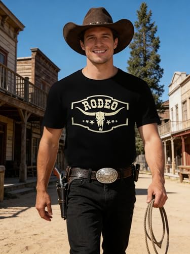 Western Cowboy Rodeo Shirts: Mens Vintage Cow Skull Graphic Tees Boho Country Concert Music T-Shirts