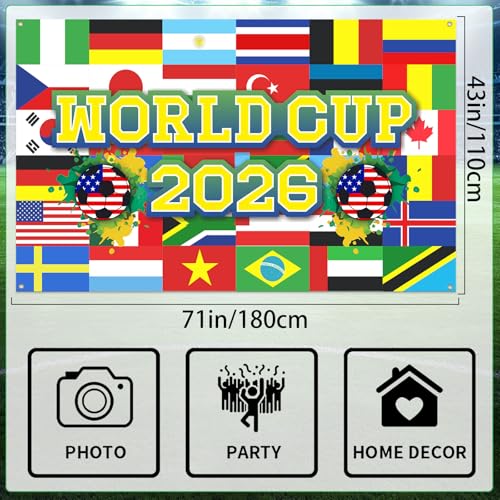Click for More Images World Football Tournament Cup Flags 2026: This vibrant backdrop features an energetic soccer festival design with dynamic patterns and celebratory elements that capture the excitement of international football. The colorful...