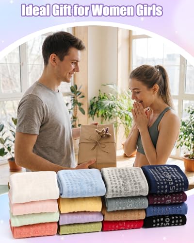 Click for More Images Yoga Socks Bulk: you will receive 16 pairs of pilates socks with grips for women in different colors, a nice complement to your workout gear and a thoughtful gift for any fitness enthusiast looking to upgrade their training...