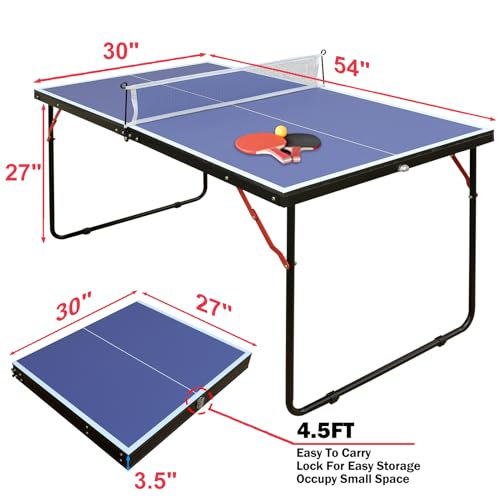 Click for More Images ?Complete Set?Includes: a small-size 4.53 ft table tennis table with 2 paddles, game net and 3 balls. Please purchase after confirming the size.?No Installation Required Easy To Store & Move? Foldable & portable table tennis...