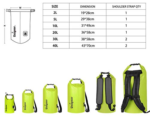 Click for More Images 100% WATERPROOF: Made of stiff 500D PVC material and designed with roll-top closure, Unigear waterproof bag protects your phones, camera, clothes, documents and snacks from Water, Sand, Dust and DirtANTI LEAK AND ANTI TEAR:...