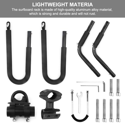 Click for More Images Lightweight Material: The surfboard rack is made of high-quality aluminum alloy material, which is strong and durable and will not rust. It's light enough that it won't add too much weight to the bike when installed.Protect...
