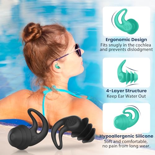 Click for More Images Ergonomic Comfort for Swimmers: Dive into comfort with our 4 pairs of ear plugs for swimming, each featuring a sleek, shark fin design that's incredibly soft. These swim ear plugs are crafted to snugly fit into your ear...