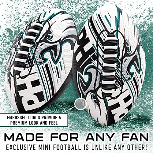 Click for More Images PHILADELPHIA EAGLES FOOTBALL: This exclusive mini football is unlike any other football as it is specially designed with embossed logos for a rare look and feel!PERFECT SIZE: This 8.5" mini football is the ideal size to fit...