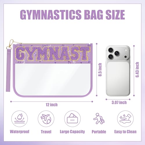 Click for More Images Versatile Design: Clear PVC gymnastics makeup bag with decorative chenille letter patch, perfect for organizing cosmetics, toiletries, and travel essentialsDurable and Waterproof: Crafted from high-quality PVC material,...