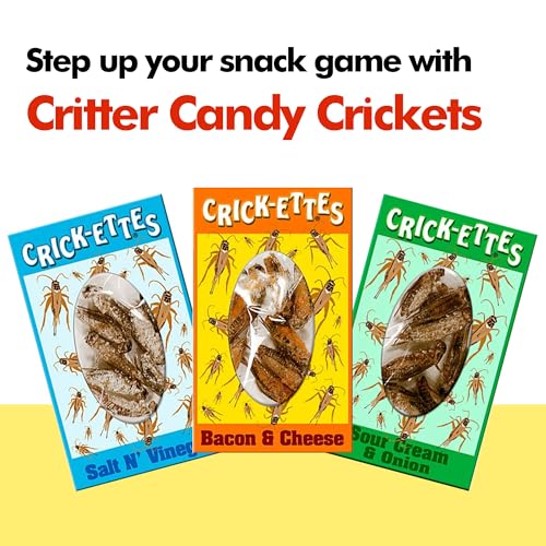 Click for More Images THREE FAMILIAR FLAVORS WITH A TWIST – These edible crickets are seasoned in three recognizable flavors: Sour Cream & Onion, Salt & Vinegar, and Bacon & Cheese. Although insects aren't a typical snack, the flavors make each...