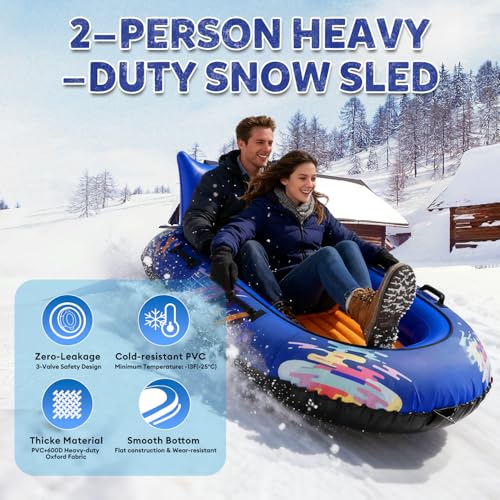 Click for More Images ??EXTRA-WIDE 2-PERSON SNOW TUBE FOR DOUBLE FUN? Experience true shared winter excitement with this extra-wide double snow sled. Extended seating comfortably fits two riders, offering improved balance and stability, while the...