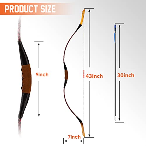 KAINOKAI 43″ Little Dragon Bow – Youthbow Set Traditional Recurve Bow and Arrow for Teens and Kids,Archery Horse Bow Longbow – Beginner Bows 14lbs (Little Red Dragon)