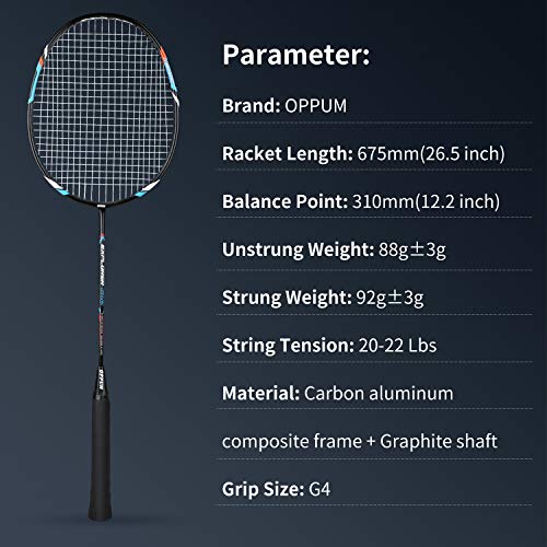 ??Lightweight and Comfortable Experience?Weight of the unstrung badminton racket is about 88 gram,very light. You can enjoy the badminton game longer and do not have shoulder pain caused by other heavier racket, can bring you a convenient sports experience.