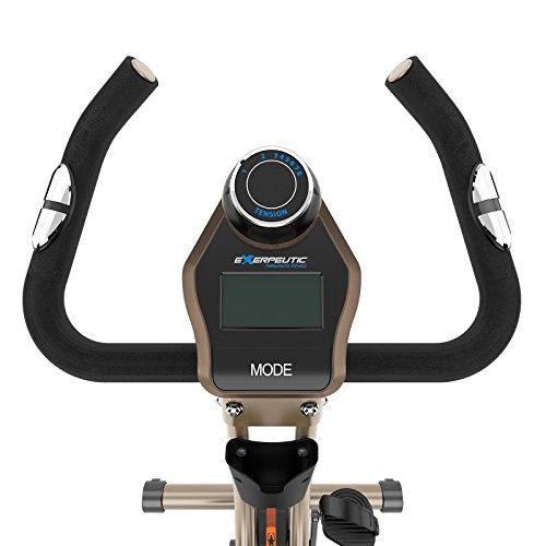 Click for More Images Heavy duty and high durability steel frame construction with up to 400 pounds weight capacity. 20% more steel than the Exerpeutic Folding Magnetic Upright Bike for more maximum performance.An 8 level Magnetic Tension control...