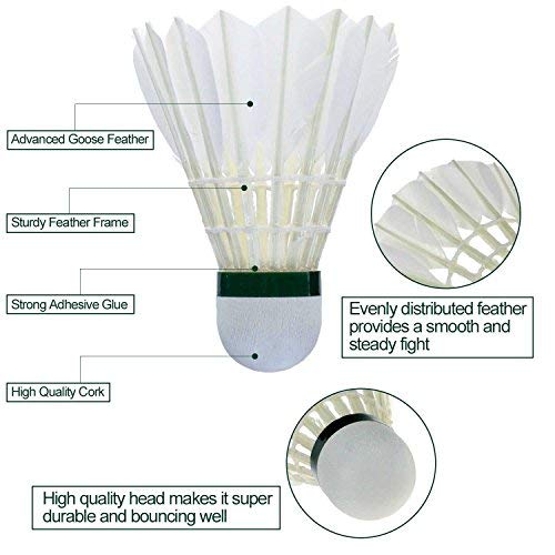 Click for More Images Premium Badminton - Equipped with 16 pieces fine goose feather, lightweight to provide smooth and even flight.Durability - Premium feather and sturdy structure provide a continuously play and make the ball for long time...