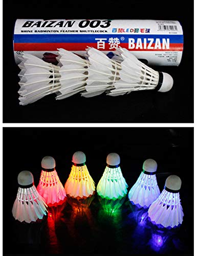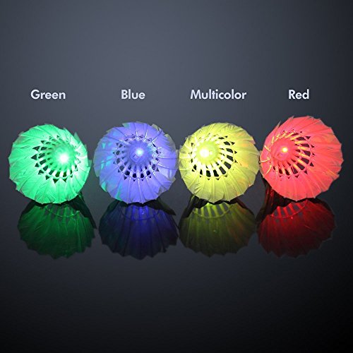 Click for More Images LED Shuttlecocks: Equipped with high quality LEDs, the feather shuttlecocks turn red, green, blue and one alternates between all three colorsOne-Button Activation: The LED lights can be switched on and off easily with the...