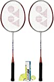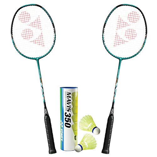 Click for More Images 2 pcs Yonex B-350 badminton rackets (Aluminum frame)1/2 doz (6 pcs) of Yonex Mavis 300 Yellow nylonHead covers are NOT includedPerfect for a game of badminton at the beach, park or in the backyard, this badminton set from...