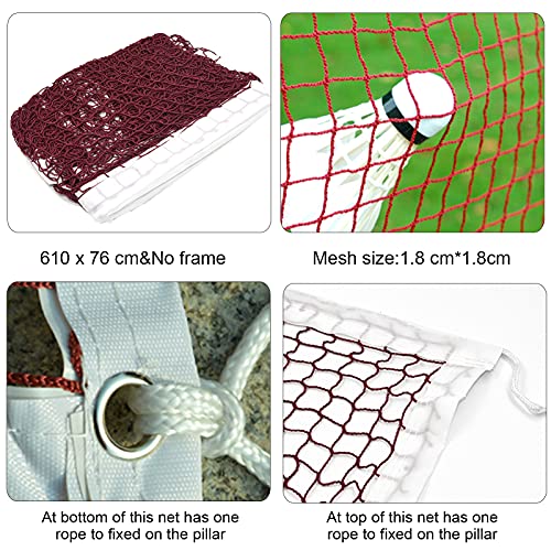 Click for More Images The Indoor outdoor sports badminton net size is 240 inch L x 29.9inch W/ 20 x 2.5 FT / 610cm x 76cm;0.7x0.7 inch square mesh net.Net Material :The badminton net is made of high-quality polypropylene and nylon fibers,...