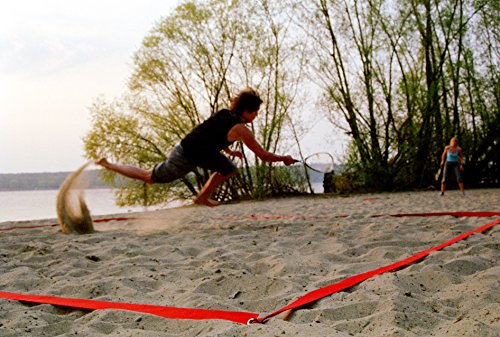 Click for More Images Easy court basic - the portable court for speed badminton matches on almost every surfaceSetup a durable outdoor speed badminton court in less than 5 minEasy court Pro, portable court made of Red straps with white Nylon...