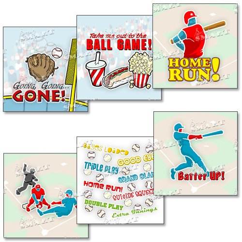 Click for More Images Contains 14 baseball designs in four sizes, 6 matching patterned designs, and 6 bordersHigh-resolution Jpeg and PDF filesRequires compatible Microsoft Word and Adobe PDF viewers.Print with just the click of a mouse More...
