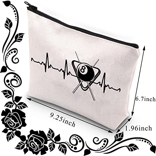 Click for More Images Material: Made of Soft Canvas Material, Strong Zipper, Waterproof Design, Double-sided printed.Size:Â 9.0" Width x 6.7" Height x 1.96" Bottom. Great for holding all of your beauty products.Bag with Billiard Pattern. Looking...