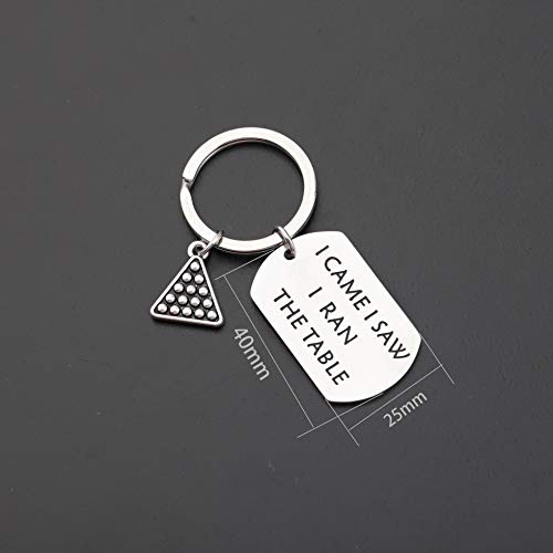 Click for More Images Billiards Keychain - I CAME I SAW I RAN THE TABLE. Are you a pool shark? Well, here you go! Material: Stainless Steel, it is lead free and nickel free, hypo allergenic, it doesn’t rust, change colour or...