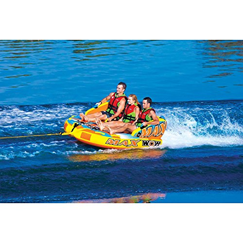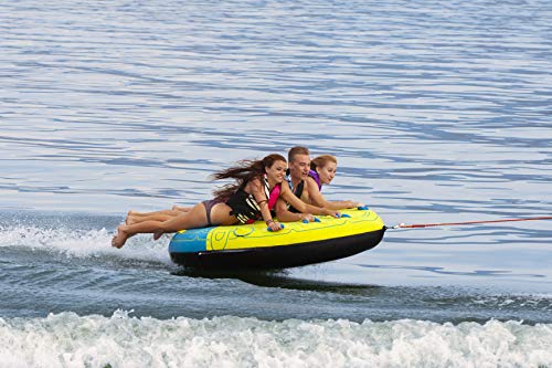 Click for More Images DURABLE: Towable water tube with heavy-duty webbed reinforced tow system and double webbing foam handles with knuckle guards makes it a durable option. Front/back-tow points give both cockpit seating and chariot style towing...