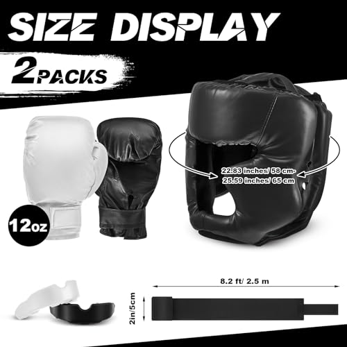 Click for More Images Nice Combination for Beginners: the package will provide you with 2 sets of boxing gear respectively in white and black color, each set contains 1 piece of helmet, 1 pair of boxing gloves, 2 rolls of boxing hand wraps and 2...