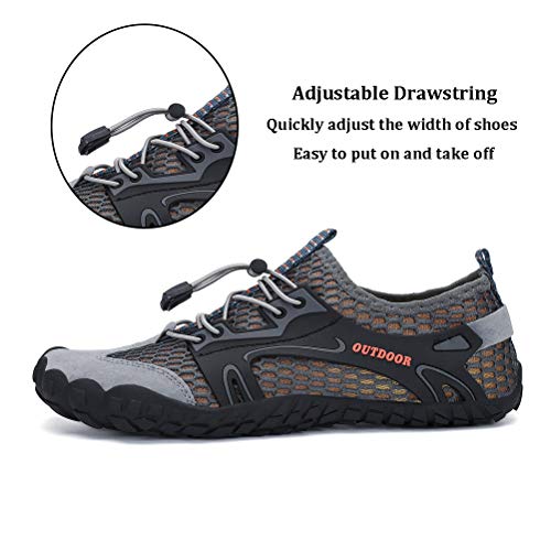 Click for More Images BREATHABLE MESH MATERIAL: This water shoes upper with flexible breathable mesh fabric, thicker rubber sole better durable with anti-slip and shock absorptionQUICK-DRY: beach shoes bottom with 11 drainage holes ensure water...