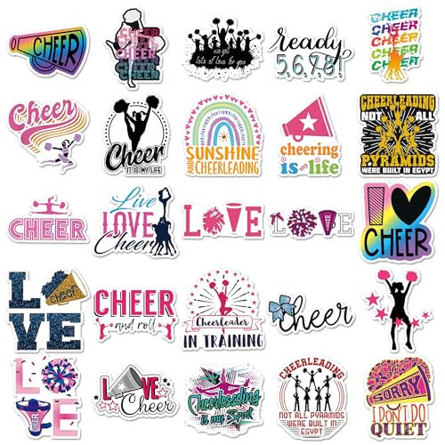 Click for More Images [50PCs Cheerleader Stickers] Great variety no repeat Pink Cheering Girl Stickers[Length] 2~3.5 in.?[Width] 1.5~3 in.[Vinyl Material] Waterproof, Reusable, No Residue[Stickers for] Water Bottle, Laptop, PC, Case, Phone, Car,...