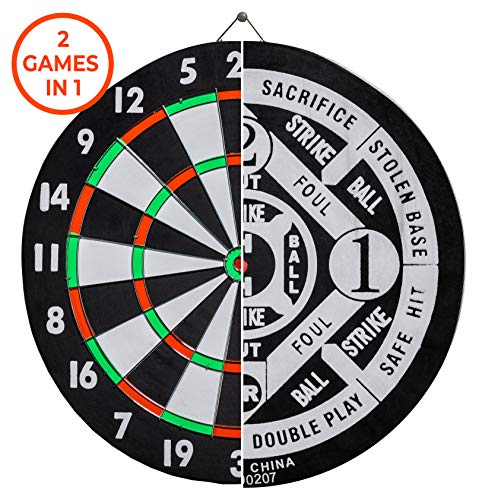 Click for More Images DOUBLE SIDED: This dartboard is double sided for two games in one: traditional darts on one side and baseball darts on the other!PREMIUM PERFORMANCE: The high-quality wound paper playing surface self-heals and provides a...