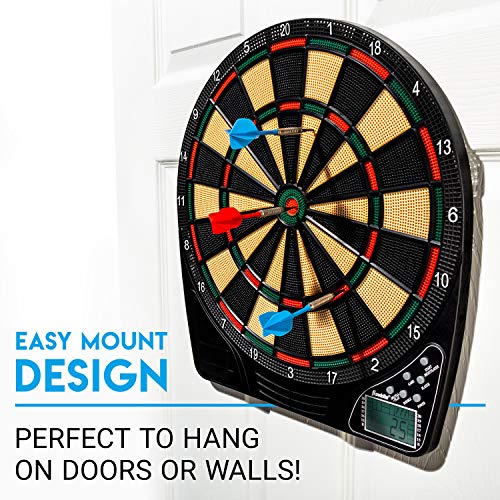 Click for More Images Top Quality Segments - Regulation-sized 15.5” electronic dart board target area is incredibly durable with precision engineered concave segment holes that lock in your shotsLED Enhanced Scoring - Built-in LED lights give...