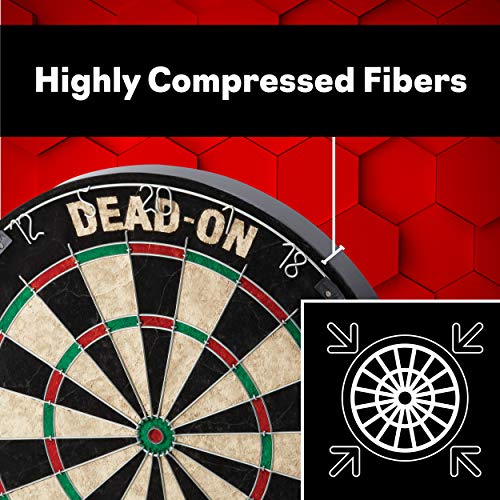 Click for More Images Constructed from self-healing sisal bristle fibers compressed together, providing unsurpassed durabilityFeatures a staple-free bullseye which helps prevent bounce-outs; A movable number ring further extends the dartboard's...