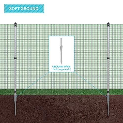 Click for More Images Come with our fence posts for easy installation and removal. You are able to set the required pole spacing with this fence and this fence can be set up in rectangle shape. For soft ground mounting, purchase our ground spikes...