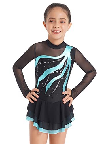 Click for More Images Women adult figure ice skating roller skating ballet dance leotard dress, pull on closureMock neck with press button fastening, sheer mesh long sleeves and keyhole back, top bodice decorated with shiny rhinestones1 layer...