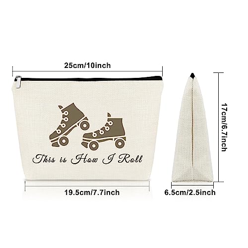 Click for More Images Gifts for Roller Skater Women?The text on the theme on the skater's makeup bag is "This is How I Roll", which is the perfect gift for roller skating enthusiasts and athletes, whether you are in the roller street, skating...