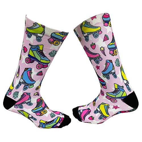 Click for More Images ROLLER SKATING SOCKS: These blue roller skate socks are featured with colorful roller skates. The funny sports socks have a hidden message sewn on the bottom that reads "I'D RATHER BE ROLLER SKATING".SIZE & PACKAGE: Our...