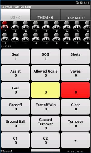 Click for More Images This Lacrosse Stats App will allow you to track up to 30 players per team capturing stats with two clicks.This App allows you to track both Men or Women stats.Many of the buttons are customizable, allowing you to change the...