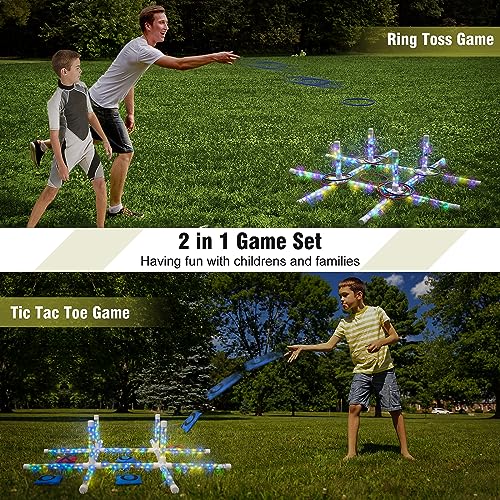 Click for More Images 2-in-1 Fun: Enjoy the classic game of Tic Tac Toe and the excitement of ring toss in one versatile game set.Brilliant LED Lights: Experience a mesmerizing glow with built-in LED lights, making your game sessions visually...