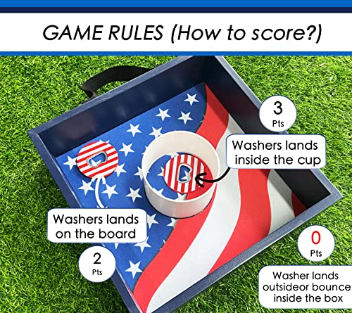 Click for More Images Includes 2 wooden targets (12.5" x 12.5" x 3.2") and 8 washers.Durable pine wood targets with steel plastic coated washers.Stainless steel latch allows two targets stay in place after play.Carry handle for transport.Let us...