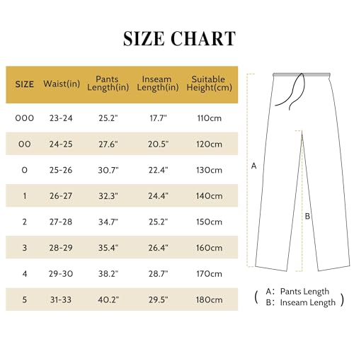 Click for More Images Kids&Adult Karate Pants: Size X-Small= 000 110cm child 3-4 3'-3'5"" 30-45 lbs?55% Cotton, 45% Polyester, Blend Fabric, These 8oz martial arts pants are high quality for comfort, easy care and extremely durability.Wide...