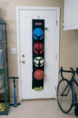 Click for More Images MULTI-PURPOSE: Stores Sports Balls, Ski Helmets, Bike Helmets, Bike Shoes, Rackets, Stuffed Animals, etc.ADJUSTABLE: Patended "T-Strap" feature adjusts to different sized objects to securely hold them in place.SPACE-SAVING:...