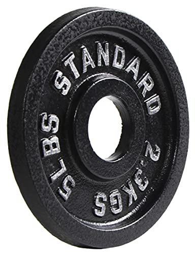 Click for More Images Made of solid cast iron with a 2-inch center hole fits any Olympic bar with diameter 2” or less; Can be used with 2” dumbbell bars tooAll plates features a durable, black baked enamel finish to prevent the plates from...