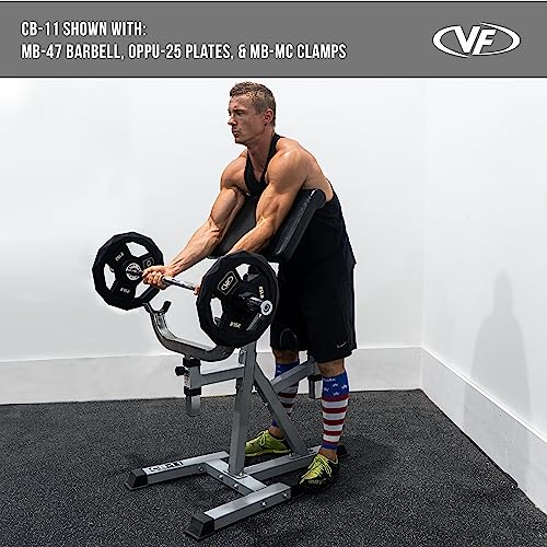 Click for More Images HEAVY DUTY- Made of 2” x 2”, 12- gauge steel for a strong and sturdy frame HIGH DENSITY PADDING- Dual layered vinyl padding withstands intense arm curl workouts over timeBAR HOLDER- Steel, chrome plated curl bar holder...
