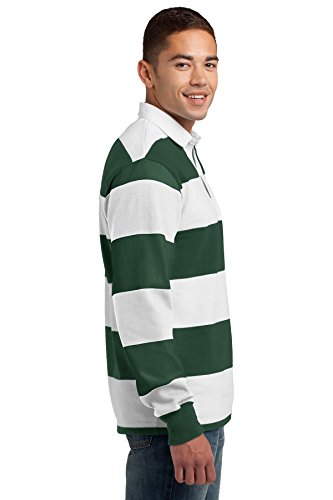 Click for More Images Cotton jersey with a classic 4 inch rugby stripeWhite twill collar stitched with reinforcing tape for added strengthHeavy-duty white twill placket conceals rubber buttonsRib knit cuffsReinforced stitching throughout for...
