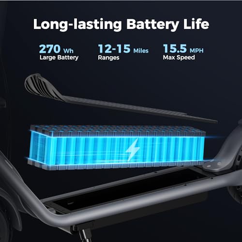 Click for More Images Powerful E Scooter Motor - Powered by a robust 500W peak motor, the JS2 electric scooter offers max speed of 15.5 MPH, conquers steep inclines of 15% with ease and travels up to 15-19 miles on a single charge. (Depends on...