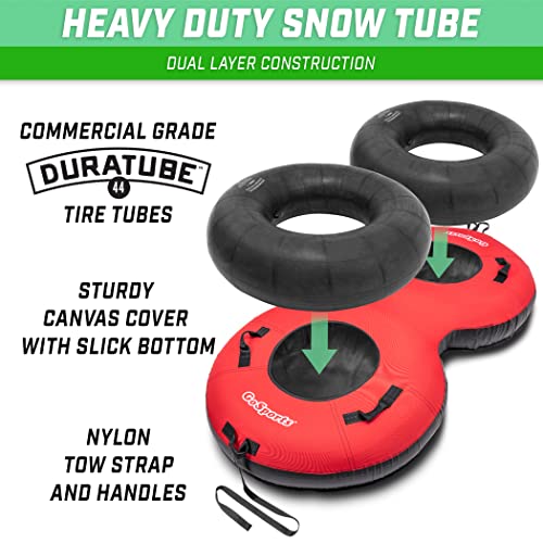 Click for More Images 2 PERSON TUBE: Double 44 inch DuraTubes allow 2 adults to ride together in a commercial grade snow tubeHEAVY-DUTY CONSTRUCTION: Two reinforced DuraTube tire tubes enclosed by a premium canvas cover with a smooth coated...