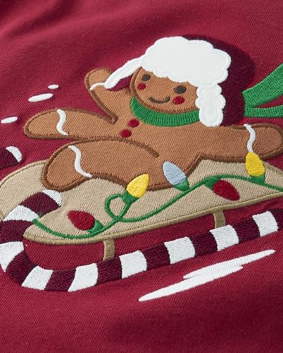 Click for More Images LONG SLEEVE TOP — He's building gingerbread houses in this cute embroidered top!EMBROIDERY — Features gingerbread man on sleighFEATURES — 100% cotton jersey, rib-knit crew neck and long contrast layered...